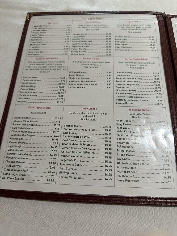 Introducing the menu at Tandoori Night in Fresno, California, a renowned Indian restaurant offering a plethora of options for various preferences. The menu boasts vegan and vegetarian choices, with options for different spice levels to suit all taste buds. Customers rave about the butter chicken, samosas, naan, and curry dishes, highlighting the delicious flavors and generous portions. The lunch special is a popular choice, providing a variety of dishes on one plate, including freshly made naan and dessert. The attentive service, clean ambiance, and quick delivery times only add to the overall dining experience. Tandoori Night is praised for its authentic Indian cuisine, making it a must-visit spot for food enthusiasts looking to indulge in flavorful and satisfying meals.